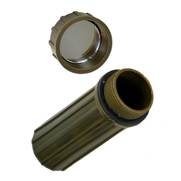 Veekindel tuletikukarp. Karbi all ääres tulekivi. Kaane sees peegel